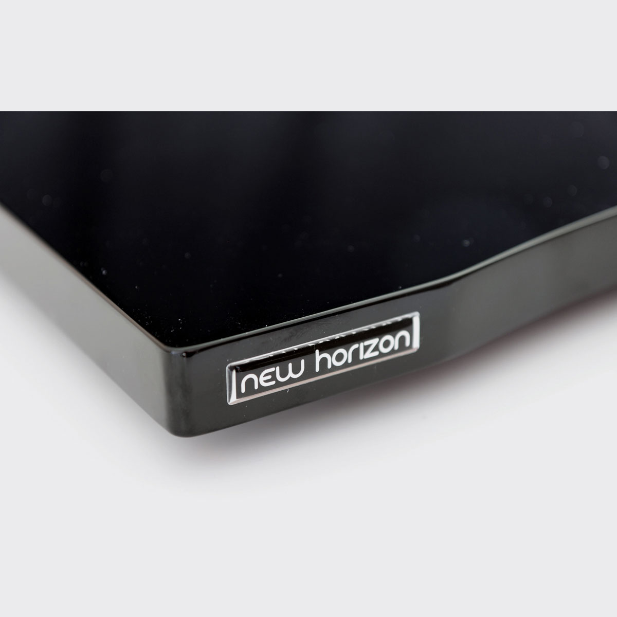 Der New Horizon GDS II ist mit New Horizons quarzgesteuerter Drehzahlregelung (ALE) und einem 24 mm hohen, zweisaitigen Plattenteller ausgestattet. Die drei verstellbaren Füße sind luxuriös gestaltet und mit einem hochflexiblen und resonanzdämpfenden Material (EPDM) ausgestattet. Der voll verstellbare Tonarm wird mit zwei zusätzlichen Gegengewichten geliefert, die die Verwendung aller gängigen Tonabnehmer ermöglichen (nicht im Lieferumfang).